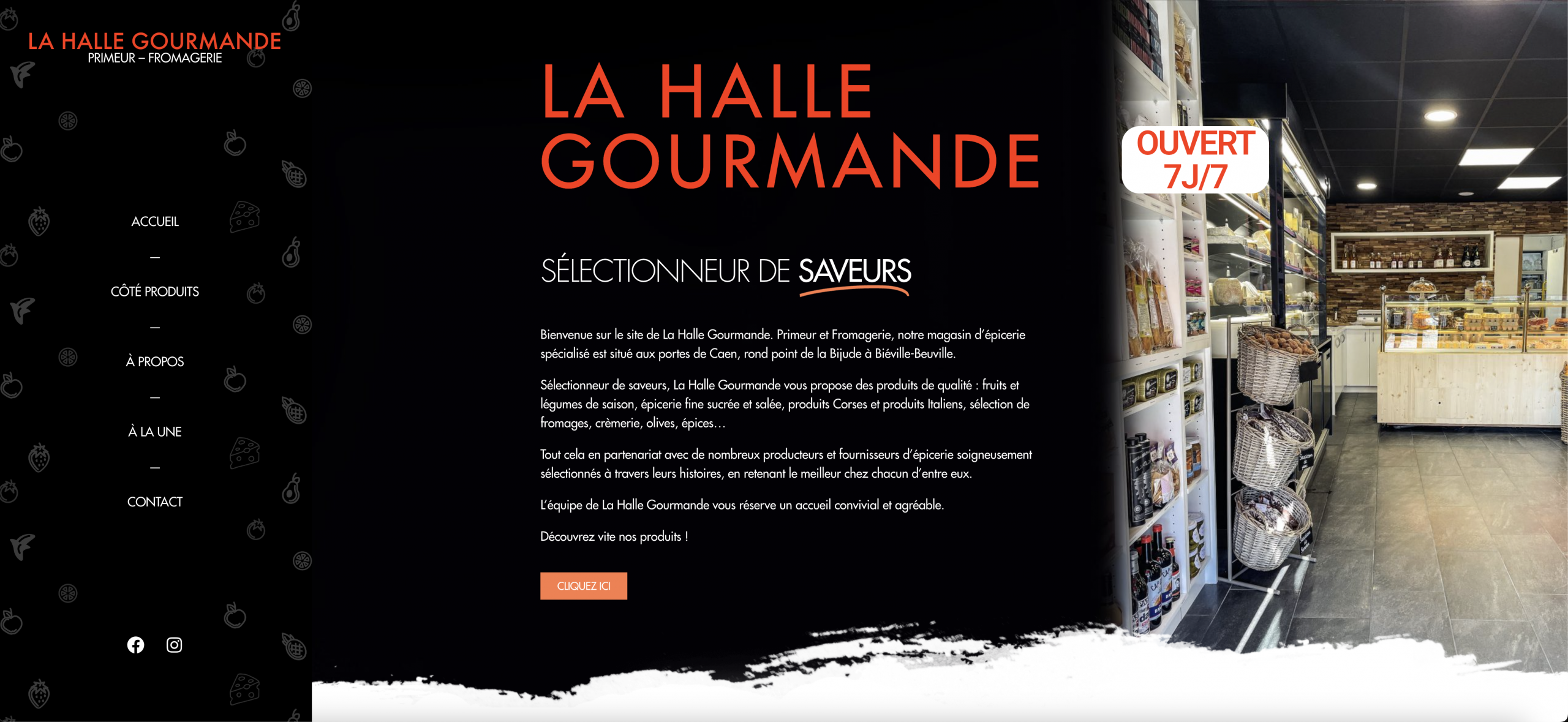 La Halle Gourmande est un espace dédié aux produits locaux, bio et de qualité, situé dans le centre-ville de Caen. L’objectif était de créer une identité forte et chaleureuse pour cette enseigne qui se positionne comme un acteur majeur de l’alimentation responsable, tout en offrant une expérience en ligne fluide et accueillante pour ses clients (lahalle-gourmande.fr).